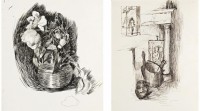 A PAIR OF EARLY INK DRAWINGS (i) BOWL OF ROSES c.1883 (ii) FIREPLACE CORNER WITH INSET OF FIGURE COMPOSITION c.1887-88