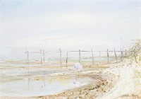 FIGURE ON BEACH WITH JETTY, ROSEBUD