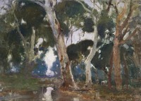 BOAT AND BATHERS AT NARRABEEN VERSO: RIVER LANDSCAPE