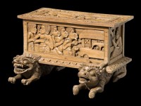 WOODEN BOX DEPICTING SCENES FROM DONALD FRIEND'S LIFE, c.1972