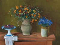 STILL LIFE WITH FLOWERS AND PLUMS, c.1978