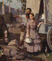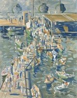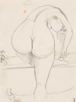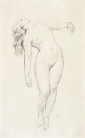 (NUDE STUDY – MALE MODEL WITH MOUSTACHE, HALF-DRAPED, FRONT VIEW)