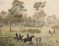 MOUNTED POLICE WITH SETTLERS AND ABORIGINES, TOOLOOM, N.S.W., 1860