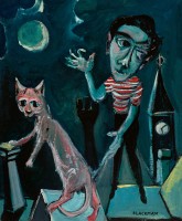 SELF PORTRAIT WITH CAT ON ROOFTOPS, c.1952