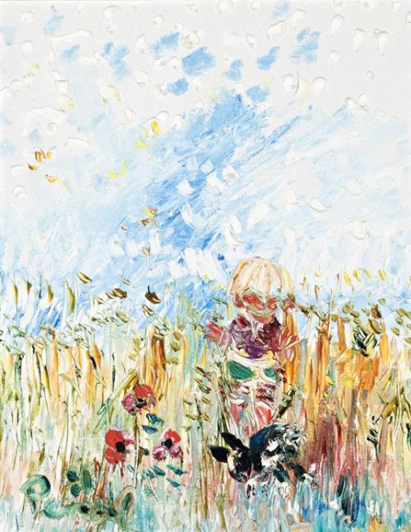 signed lower left: Perceval signed, dated and inscribed verso: Boy with/ Rabbit in/ the wheatfield/ Perceval/ 1981