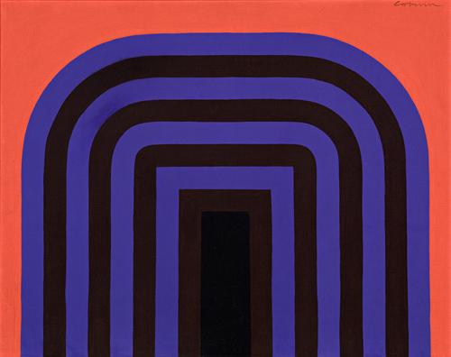 signed upper right: Coburn signed, dated & inscribed verso: "EXIT" Acrylic/ John Coburn/ Paris 1971