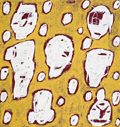 dated and inscribed upper centre: Fabric - with head/ and dot pattern./ May, 1993. signed, dated and inscribed verso: FABRIC - WITH/ HEAD AND DOT PATTERN. MAY 1993. PETER ATKINS.