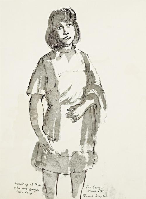 inscribed lower left: Hands up all those/ who are gunna/ 'ave Soup! inscribed lower right: For George- / Xmas 1969/ Russell Drysdale