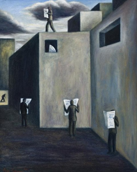 signed and dated lower left: John Cullinane/ 2001 inscribed verso: 51 x 41 cm/ "NEWS"/ John/ Cullinane/ Nov. 2001