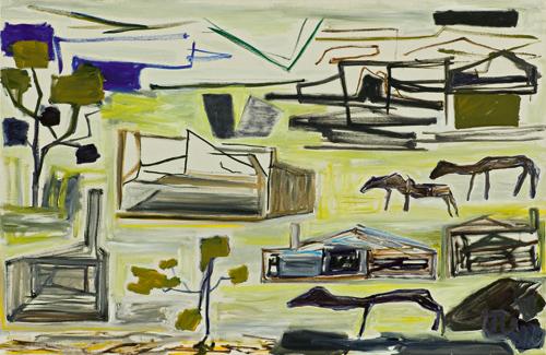 signed, dated and inscribed verso: Ken Whisson/ Perugia/ Night/ Painted 1/1/91/ Recollection of Boonah/ Queensland/ (Granite Belt) inscribed extensively by the artist verso