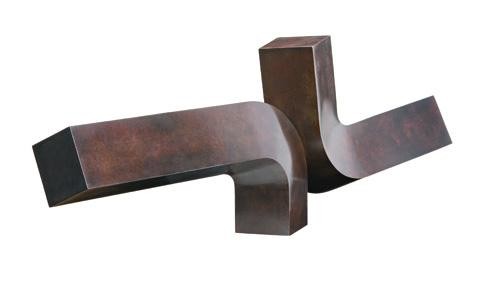 Moving to New York in 1963, his extrovert sculpture took on something of the exhilaration and latent power of the megatropolis, populating some of its famous public places and institutions. A 1978 work is titled Six-footmodel for six-hundred-foot skyscraper sculpture. Embracing international fame, his works are now found from London to Tokyo, throughout Australia, and prestigious collections the like of New York's Metropolitan Museum of Art and the Art Institute of Chicago. A master of Minimalist sculpture, his works celebrate the grandeur of complexity translated through the power of simplicity. On whatever scale, his sculptures are imbued with a feeling of monumentality, found equally in the gigantic Awakening, 1968 (Australian Mutual Provident Society, Melbourne) or in the more human size of Night and Day. If the Hellenistic sculptor of Laocoön was the master of the twist of ancient times, Meadmore won the accolade for the curve in our own. In Night and Day the balanced harmony of movement in opposition unites at the juncture of that twist, one half supported by the ground on which it stands, the other suspended, weightless, magically impossible. The fluidity and balance echo that of a prima ballerina, of elegance and finesse, giving, through its line and mass, a special presence to the environment of its placement.
