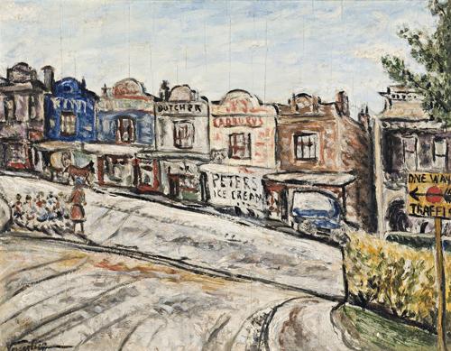 signed lower left: Vassilieff inscribed verso: "VICTORIA PARADE"/ 1937/ DANILA VASSILIEFF