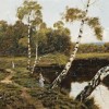 WOMEN IN LAKESIDE LANDSCAPE WITH BIRCH TREES , 1878