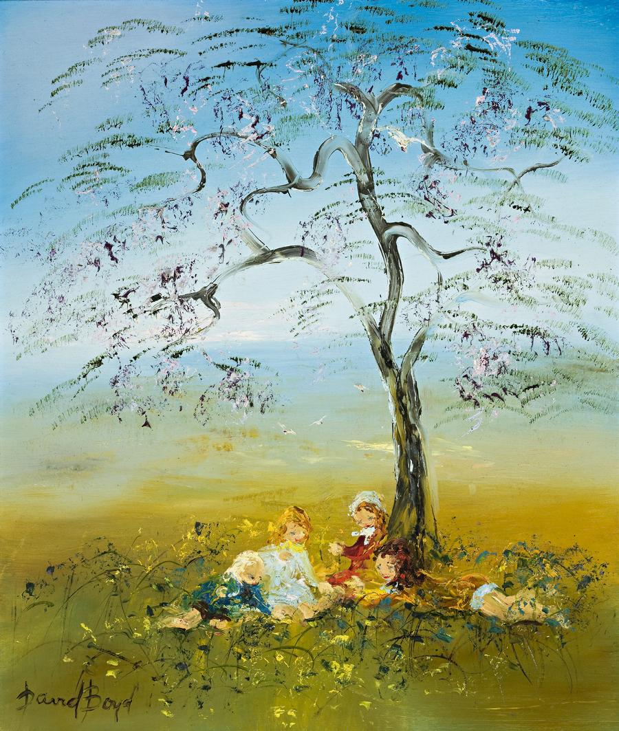 inscribed verso: GATHERING /UNDER / A / JACARANDA
