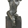 Henry Moore's Titanesque Maquette for Warrior Without Shield, 1952, has its antecedents in Michelangelo and Classical Greek sculpture and mythology. Though small in size, it is monumental in concept and feeling, the dynamics of the male human figure employed to express ideas of epic proportion. The warrior, precariously balanced on its base, recalls Michelangelo's massive marble figures of Night and Day, Evening and Dawn on the Medici tombs in the Sagrestia Nuova of San Lorenzo, Florence. Moreover, the tensions and inner struggles expressed through the musculature of Moore's bronzed figure have an affinity with Michelangelo's marble Slaves, as seen in the Louvre, Paris, and Florence's Accademia. Drawing inspiration from such marvels of the High Renaissance, Moore likewise felt the impact of the Acropolis sculptures, found in the pedimental carvings and friezes of the Parthenon in the British Museum. Fascinated by these heroes of ancient mythology, the Hellenic influence was heightened by his visit to Greece in 1951. None imitate; but as in all great art, they are informed by the past as inspiration grows out of and matches inspiration.