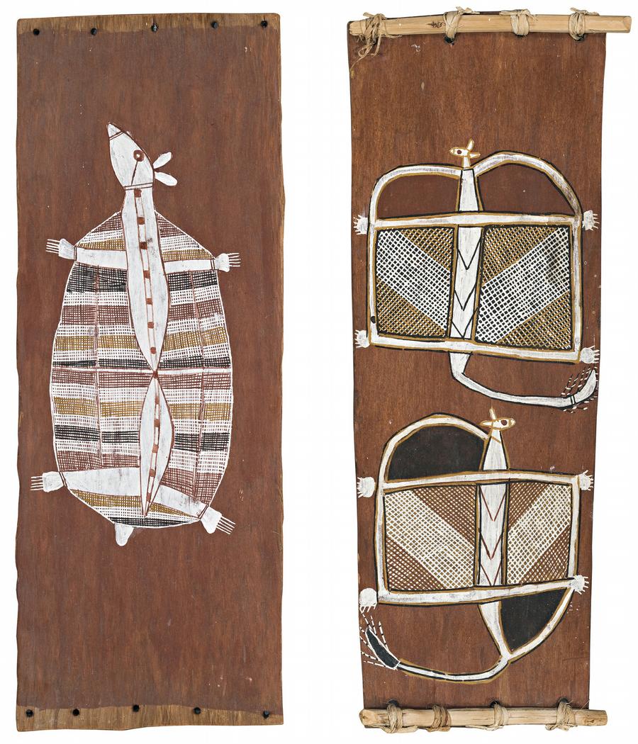 (i) UNTITLED NATURAL EARTH PIGMENTS ON EUCALYPTUS BARK (ii) UNTITLED NATURAL EARTH PIGMENTS ON EUCALYPTUS BARK