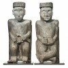 carved in ironwood, one figure cross legged, the other sitting