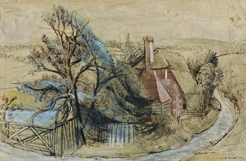 signed and inscribed lower right: Donald Friend / A Farm in Hampshire