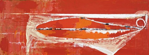 inscribed verso: JOHN FIRTH-SMITH / “SALMON” (RED LEAD) 1988 / OIL ON LINEN / 8’X 3’ / SYDNEY