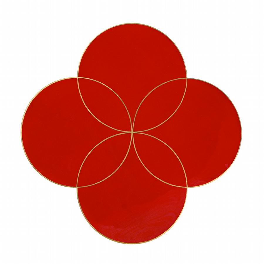 The quatrefoil - its idiosyncratic shape - was first used by Gimblett in the early eighties. And when we think of the history of painting it's not something we associate with the West. For Gimblett it is a form which represents part of the symbolism contained within the work itself. And Gimblett's use of materials; of paints, resins and precious metals hold a connection with their symbolic applications in particular cultures. Stylistically the quatrefoils have ranged from immediate calligraphic gestures which come out of an enduring respect for the work of Gibbon Sengai2 to cooler, more restrained and subtle surfaces in which the clarity of form and pure application of materials consume the work with a contemplative elegance.