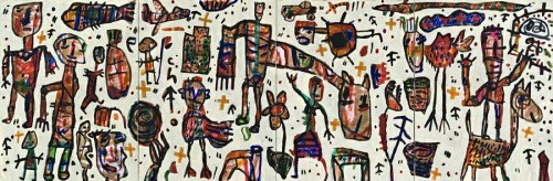 Populated by animated figures and symbols rendered in Larwill's characteristic urban primitive manner, Unplugged 1996, represents the culmination of almost two decades of tireless endeavor. Like the diptych Spring of the same year, Larwill's paintings of this scale and energy demand a direct and spontaneous response from the viewer. Full of light and generous in spirit, the paintings from this period led to Anthony Clark in The Australian acknowledging Larwill as one of the leading artists of his generation.2