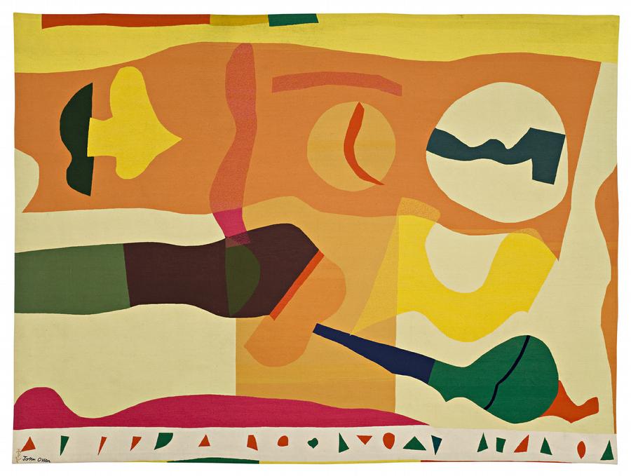The Portalegre atelier was continuing a long tradition dating back to 1771, when a weaving mill was established in the former ‘Colegio Sao Sebastiao’ built by the Jesuits in the seventeenth century. In the twentieth century, the workshop developed a reputation under the management of the firm Francisco Fino Ltd, with each succeeding administration taking pride in keeping their methods up to date and seeking a worldwide market. Olsen and MacDonald had a preference for the work methods at Portalegre, which they considered more flexible in interpreting the range of the artist's palette than Aubusson. It was also economically more viable. Olsen decided to return to Portugal the following year to work for an extended period with the weavers…
