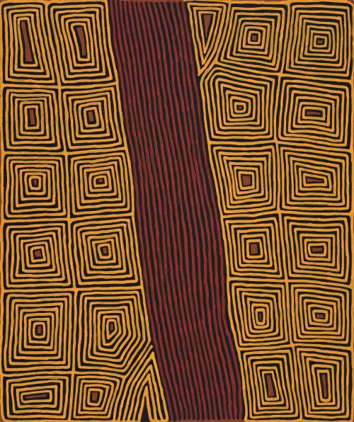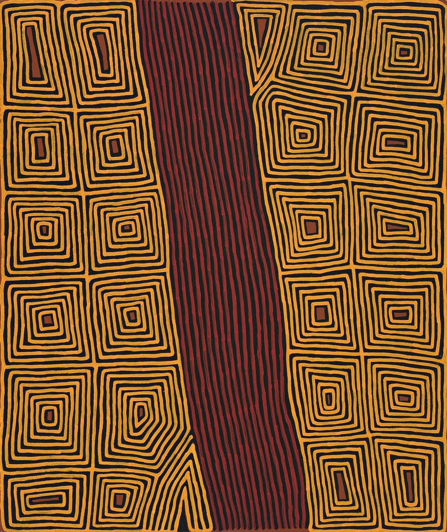 This painting is accompanied by a certificate of authenticity from Papunya Tula Artists, Alice Springs