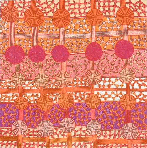 This painting is accompanied by a certificate of authenticity from Papunya Tula Artists, Alice Springs