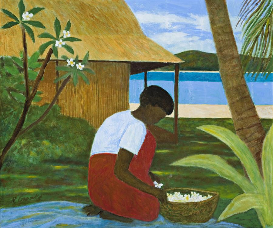 ISLANDER WOMAN WITH FRANGIPANI FLOWERS