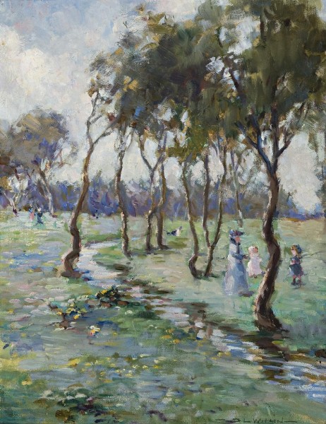 MOTHER AND CHILDREN BY A STREAM, c.1905
