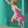 What could be more contradictory than movement within a Jeffrey Smart painting? Yet, he flirts with it all the time. His focus is invariably on objects that move - trucks, motor vehicles, aeroplanes, and the signs, autostrada and ports that go with them. Stillness, however, is the chief characteristic of his art. This is part of the paradoxical appeal of Smart's art. When figures are present within his paintings, they are usually seated on standing. If they move, he freezes them in motion, as in Third Study for 'The Construction Fence'. Nevertheless, the frozen movement of the running girl is not constrained as the figure and the fence heighten awareness of each other through their harmony in supposed contrast. Immutable as the fence may be, its painterly fluidity entices movement.