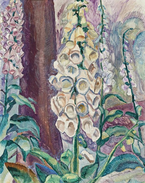 signed and dated lower right: G. Cossington Smith 1929, signed and inscribed with title on label verso: Foxgloves Growing / Foxgloves Growing /Grace Cossington Smith