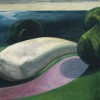 In London some years later, de Maistre returned to this painting as the inspiration for The Great Stone, 1932. Heather Johnson, in her monograph on de Maistre's English years, noted, 'Rather than being a variation of the first work, as was the case with most of de Maistre's reworking of paintings, The Great Stone is totally removed in subject and feeling from the original painting.'1 The flowerbed, she said, had 'become a surging, spiritual, abstract power.' The force of its imagery was not lost on others. The reviewer for the New Statesman wrote of de Maistre's 1960 London retrospective exhibition at the Whitechapel Gallery, '...for me the most compelling images here are two early works, The Great Stone, 1932, and The White Towers, 1934, romantic visions of simple massive static forms pregnant with mysterious force.'2 Like the European Symbolist paintings of the end of the nineteenth century, a work of this kind can lead several ways in imagery and intent. First, there are the various interplays - between flatness and the tactile, sculptural feeling, which are allied to the intentional ambiguity between realism and abstraction as parallels to the symbolism. Then there is the intriguing metamorphosis of the flowerbed, its symbolism being so oblique that it is hard to define. As the dominant form, perhaps that is the point - sculpturally static, curvaceously flowing in the best paradoxical manner of symbols. The Great Stone is a more intellectually intuitive painting. The harmony between and fundamentalism of the forms invite meditation on the same - of reasoned intuition leading to deeper levels of contemplation and perception of the verities.