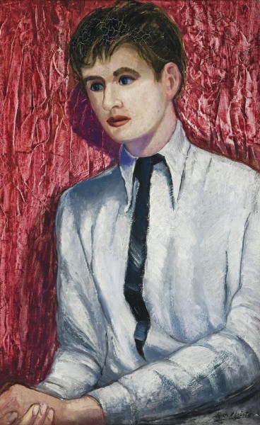 The meeting of the youthful artist prodigy and the urbane painter was the exciting mix that produced such a fascinating portrait. Indeed, portraits may be considered two-way mirrors, revealing as much about their creator as about the sitter. Moreover, likeness is but the matter; to make it a work of art is another thing altogether. In Portrait of Francis Bacon, Roy de Maistre achieved both - appearance, insight, and his own sense of things. Others have commentated on this appearance of Bacon in his twenties, of striking red lips, all so distant from the disturbing physical distortion that became so much a feature of Bacon's own later portraits in his painted essays on tortured existence and the violence of human suffering. By sharp contrast, de Maistre's portrait of Bacon shows much affection and sensitivity. Peppiatt's words describe it well - 'a slim young man with a face all but devoured by the intensity of his gaze and the sensual fullness of his mouth: a study in youthful idealism and vulnerability.'6