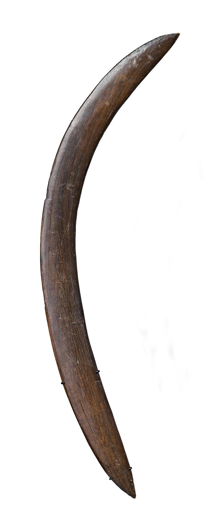 carved in hardwood, of biconvex section, and crescent shape, with old shiny patina overall