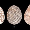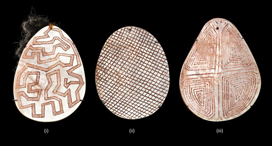 natural earth pigments on incised pearl shells, (ii) decorated on both sides
