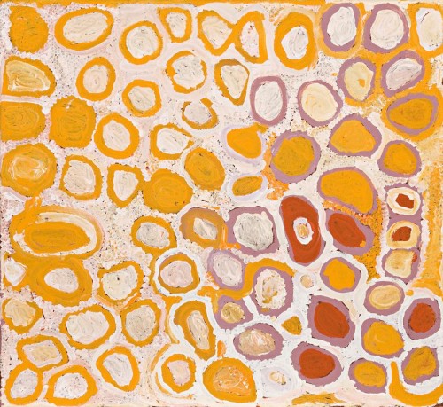This painting is accompanied by a certificate of authenticity from Papunya Tula Artists, Alice Springs