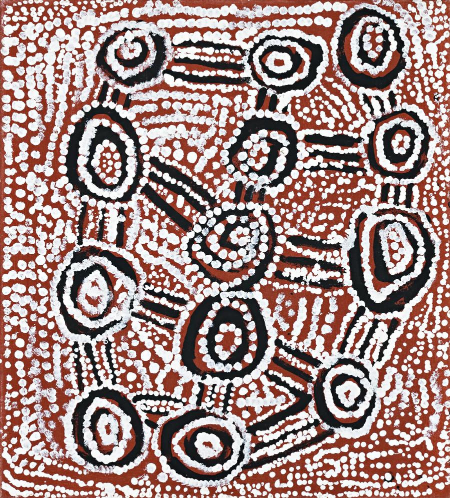 This painting is accompanied by a certificate of authenticity from Papunya Tula Artists, Alice Springs