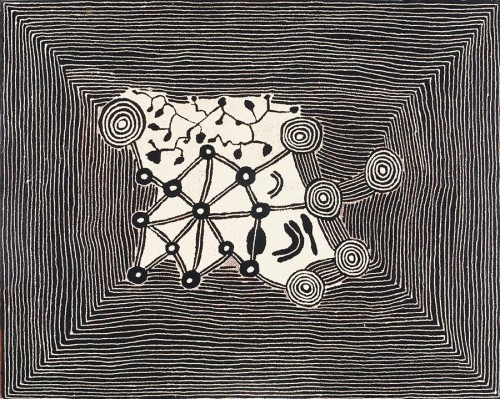 This painting is accompanied by a certificate of authenticity from Papunya Tula Artists, Alice Springs