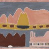 Illustrated here is Red Butt (Wirdim) country on Texas Downs Station and Doolngayim (Argument Gap) country on Newry Station. The large yellow sand dune and hill of Doogoorenyinem sits central to and directly in front of Red Butt country. Red Butt and Doolnagayim are linked with one another through the story of Gangami. 'Throughout her childhood, Queenie grew up hearing the story of Gangami, the evil woman who hid inside a cave tucked between the red folds of the mountain known as Red Butt.'2 To the right of these hills one can see the early story of a white stockman being speared by Gija tribesmen and 'at the lower right is a striking hill with large vertical cracks of different colours.' Sitting on the left of this cracked hillside is a white circle signifying the entrance to a cave which manages to winds its way through this dark brown hill.