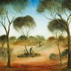 signed and dated lower left: 74 Pro Hart "CLEANING THE TRAPS"