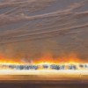 Upon first glance, The Waterline (Smokey Dusk) 2007 mines familiar territory in Storrier's oeuvre, with the strong horizontal tension of the blazing horizon echoing his celebrated 'point to point' paintings of the 1980s. Yet despite such affinities, the composition reveals a significant shift in Storrier's vision at the dawn of the new millennium: where previously his evocations of fire had been literal and direct, now his treatment is more subdued, reflective and abstract. The rope too has been replaced by a burning log and the glowing embers of a vacated campsite, thus inviting darker, more sublimated readings which explore concepts of displacement and isolation. As Lumby suggests in her monograph on the artist, these evening landscapes announce a more sophisticated exploration of the emotive, melancholic mood that has always haunted Storrier's work - of the themes of isolation and abandonment which he had focussed on explicitly in works like Retreat 1972, Defence of Indado 1973 and Death of a Warrior in Spring 1975... the landscape here is at once awe-inspiring and threatening, both enveloping and alienating.'1