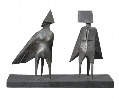 Although Chadwick's first creations were - quite appropriately given his flying experience - abstract mobiles and elegant suspended constructions of metal and glass, it is his timeless architectonic forms combining elements of the human, animal and mechanical, such as Maquette III Two Winged Figures, for which he is most widely acclaimed.