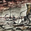 Russell Drysdale's visit to the drought-stricken areas of New South Wales in late 1944 resulted in some of the most individual landscapes yet seen in Australian art. Described as the worst drought in our history, Drysdale responded to the devastation with a singularity of presentation and sense of drama that was gripping. To capture the surreal horror of the reality, Drysdale created works of nightmarish intensity that in turn became works of extraordinary beauty. The individuality of forms was set in colours of Venetian richness, of redness and theatrical splendour. For some, they were so unusual that they saw in them visions of another planet - of lunarscapes and the red planet.
