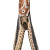 natural earth pigments on carved and shaped hardwood, with human hair, string and cowrie shell decoration
