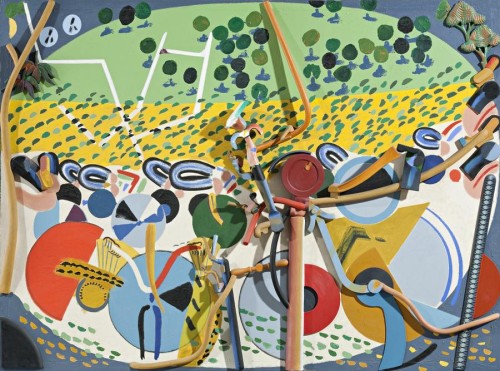 signed with initial lower right: 'L' signed, dated and inscribed verso: 'CYCLISTS' CIRCLE - CENTENNIAL PARK' Colin Lanceley SYDNEY 1990