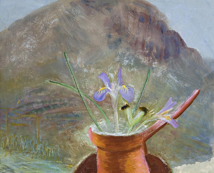 signed, dated and inscribed verso: Winifred Nicholson / Mykhne Greece - blue iris / 1969