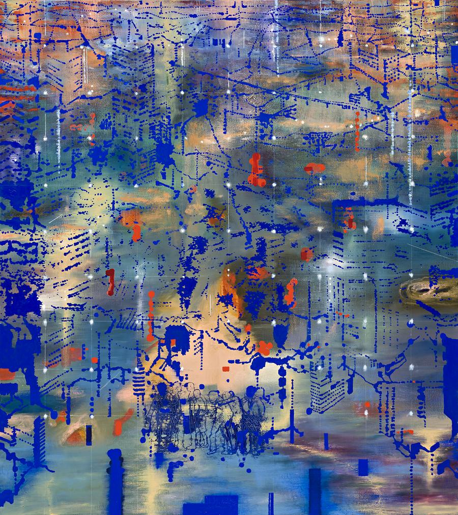 signed, dated and inscribed verso: JON CATTAPAN / "CROSSROAD (BLUE) No. 2" / ... Cattapan 2003