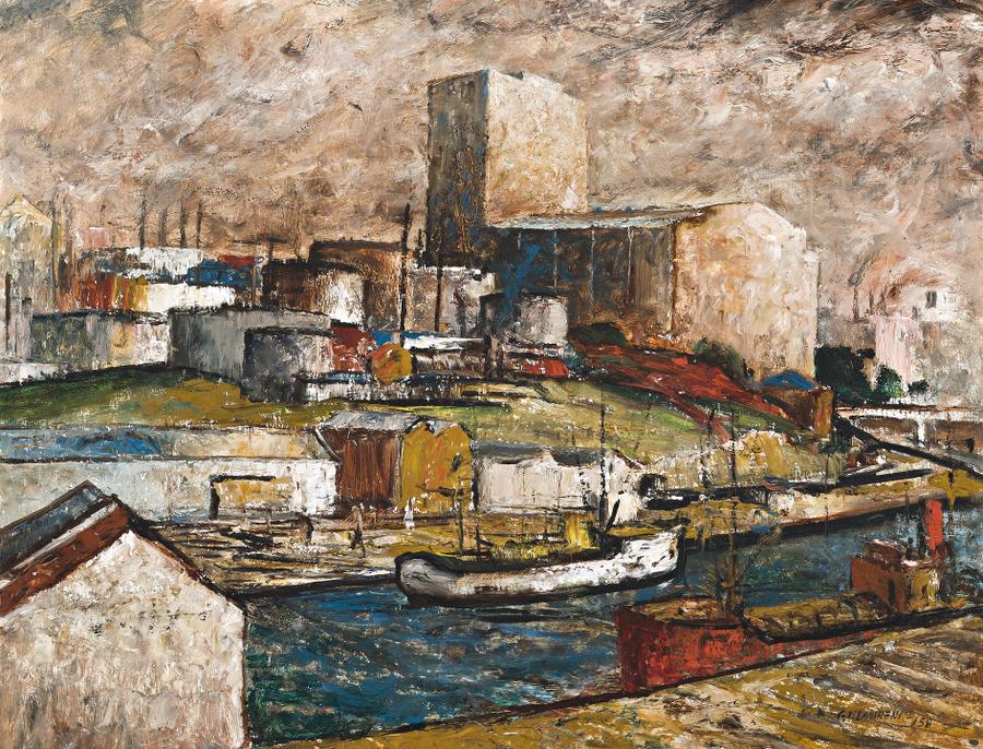 inscribed on label verso: “THE SILOS” / GEORGE F. LAWRENCE / 85 GUINEAS