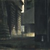 According to the artist, the full scale painting The Secret City 1993-94 and its study depict a fictional Melbourne place, a dark capriccio of any number of locations throughout the city where new buildings are juxtaposed against their historic counterparts. Study for The Secret City was painted over the course of eight years between 1993 to 2001. During that period Amor was awarded three Australia Council residencies to Barcelona (1991), New York (1996) and London (2000) and it seems probable that these experiences have influenced the development of the study in which we observe an even greater ambiguity in the chiaroscuro effects in the composition. Both paintings were commenced after the Barcelona residency and from this period vestiges of the antique city appear in his paintings and a sense of a decayed past recurs, particularly in his cityscapes. In the study the heavy modern architecture remains in the shadows and this creates a deeper sense of foreboding. The suited figure in the foreground, although faceless is the embodiment of Amor's solitary individual, alone and dissociated in his environment. He appears to have evolved fully formed from both the New York and London experience.